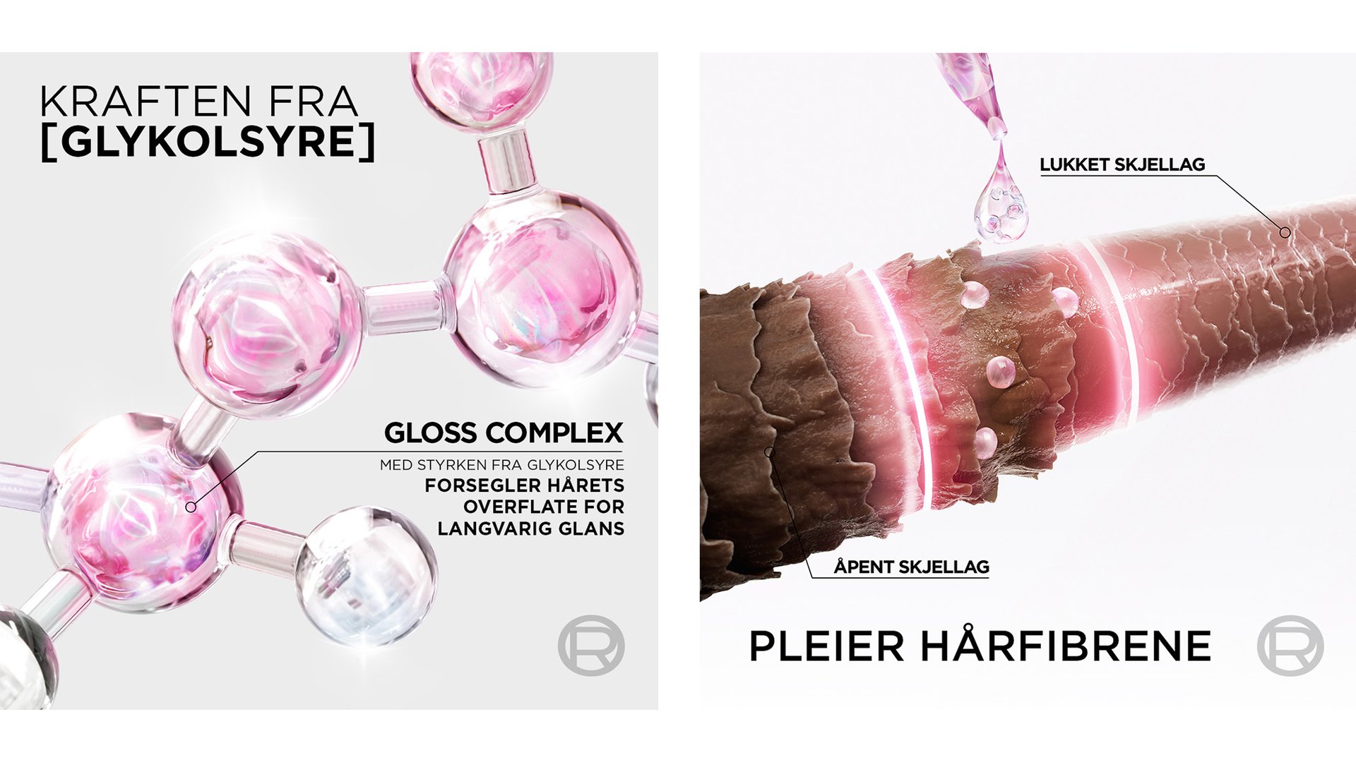Alle produktene i denne hårpleieserien er formulert med vår Gloss Complex. Dette er en unik kombinasjon av ingredienser som maksimerer effekten av glykolsyre.