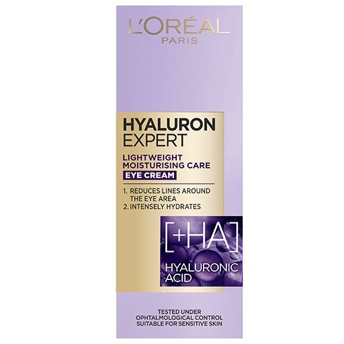 L’Oréal Paris, Hyaluron Expert Lightweight Moisturising Care Eye Cream er en lett, fuktighetsgivende øyekrem som reduserer fine linjer og gir intensiv fukt til øyepartiet.
