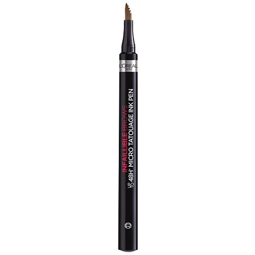 L'Oréal Paris Infaillible Brows 48H Micro Tatouage Ink Pen fyller inn og gir brynene farge som varer i opptil 48 timer*. Vannfast formel, drysser ikke og smitter ikke av. Den taggete børsten gjør det enkelt å påføre hårlignende strøk. For velpleide bryn med fin form og farge som sitter hele dagen.