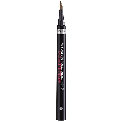 L'Oréal Paris Infaillible Brows 48H Micro Tatouage Ink Pen fyller inn og gir brynene farge som varer i opptil  48 timer*. Vannfast formel, drysser ikke og smitter ikke av. Den taggete børsten gjør det enkelt å påføre hårlignende strøk. For velpleide bryn med fin form og farge som sitter hele dagen.